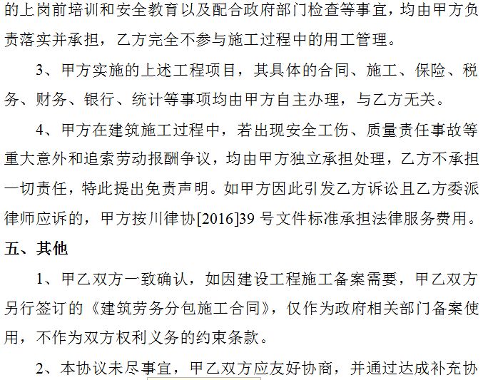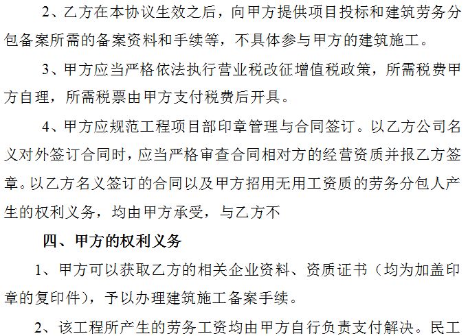 二、建筑劳务资质挂靠协议范本参考:
