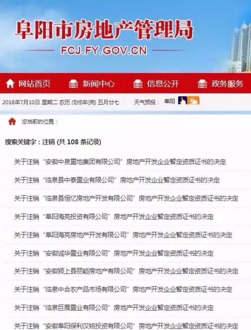又有3家阜阳房产开发企业资质被注销!今年已注销10家,包括海亮、保利……